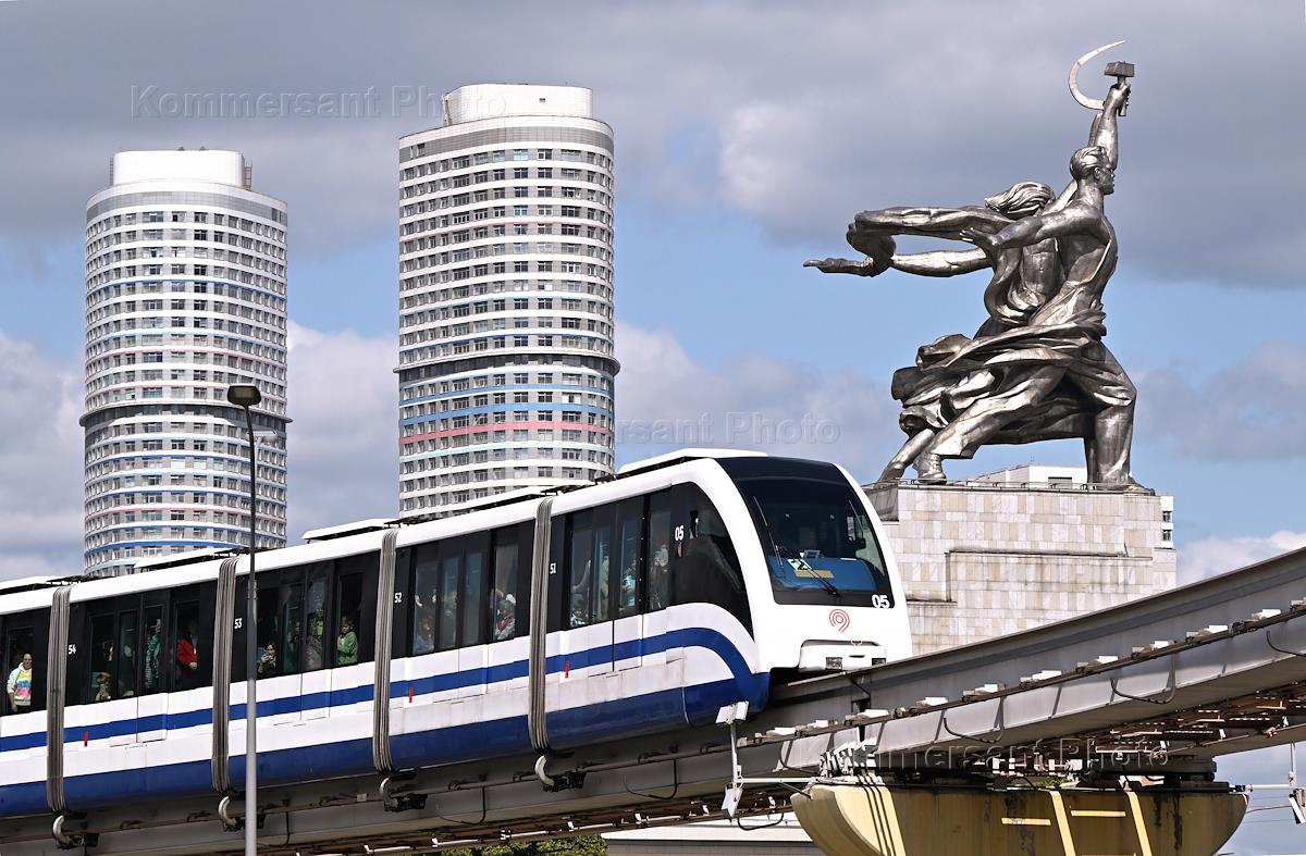 Последний день работы Московского монорельса. Жанровая фотография. Монорельсовый поезд на перегоне в районе ВДНХ.