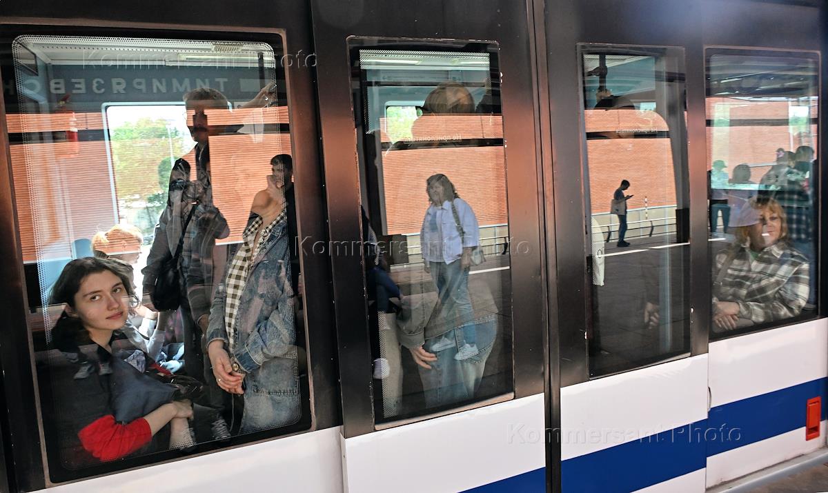 Последний день работы Московского монорельса. Жанровая фотография. Пассажиры в монорельсовом поезде.