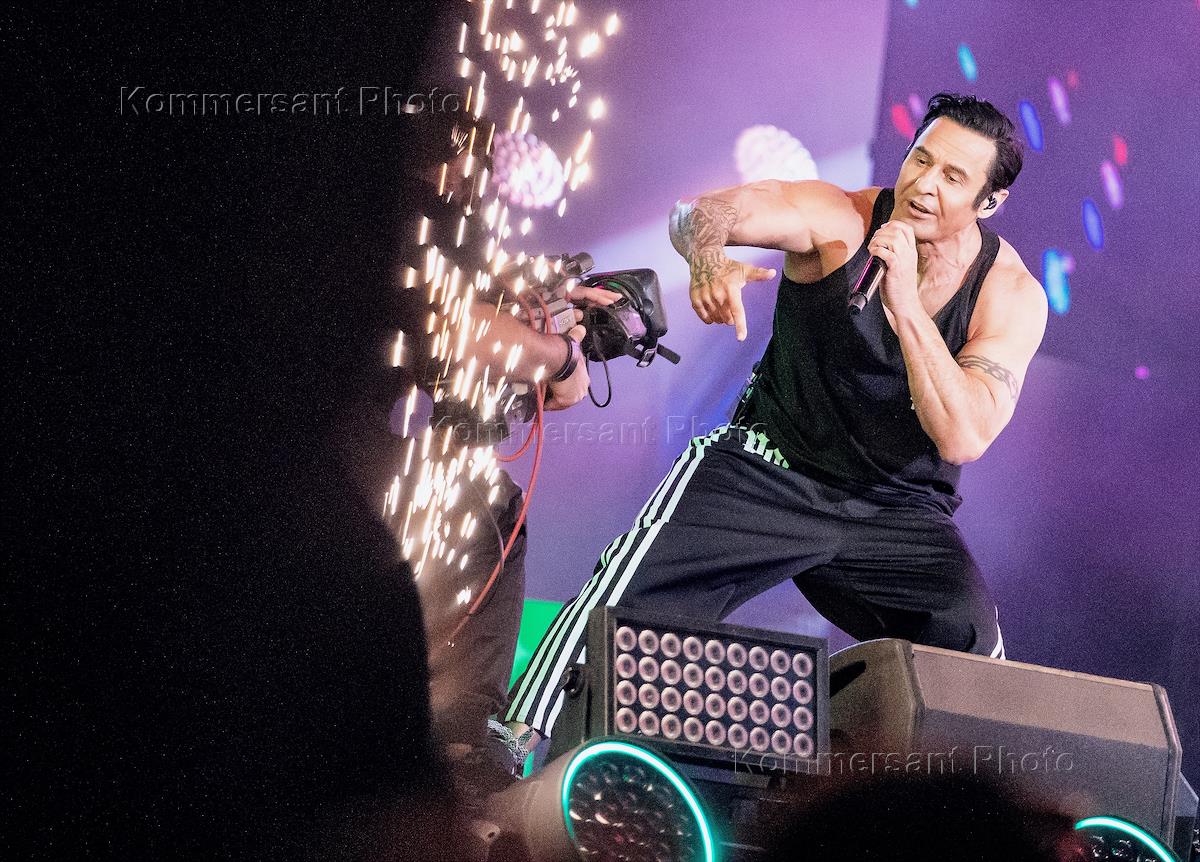 Празднование городского выпускного для московских школьников на территории ВДНХ. Певец Стас Костюшкин во время выступления.