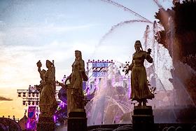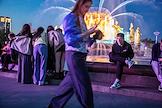 Празднование городского выпускного для московских школьников на территории ВДНХ. Жанровая фотография. Фонтан "Дружба народов".
