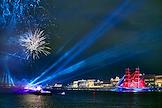 Праздник выпускников средних школ Санкт-Петербурга "Алые паруса- 2025". Бриг "Россия" в акватории Невы и праздничный фейерверк.