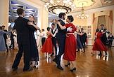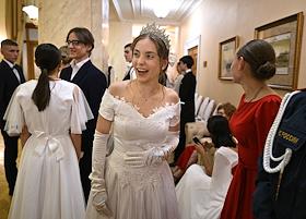 Всероссийский культурно-патриотический проект "Бал Победы", приуроченный к 80-летию Победы в Великой Отечественной войне, в Центральном академическом театре Российской армии. Участники перед началом бала.