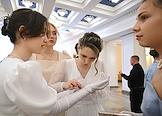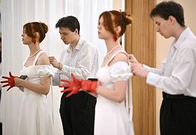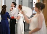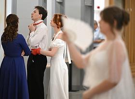Всероссийский культурно-патриотический проект "Бал Победы", приуроченный к 80-летию Победы в Великой Отечественной войне, в Центральном академическом театре Российской армии. Участники во время подготовки к балу.