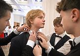 Всероссийский культурно-патриотический проект "Бал Победы", приуроченный к 80-летию Победы в Великой Отечественной войне, в Центральном академическом театре Российской армии. Участники во время подготовки к балу. Жанровая фотография.