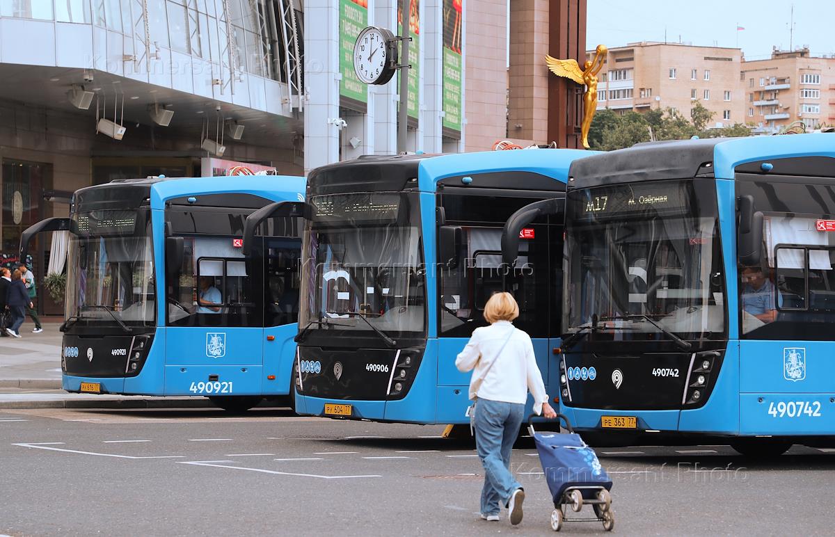 Moscow views. Genre photography. Bus stop of city transport on the square near the shopping mall "Evropeysky".