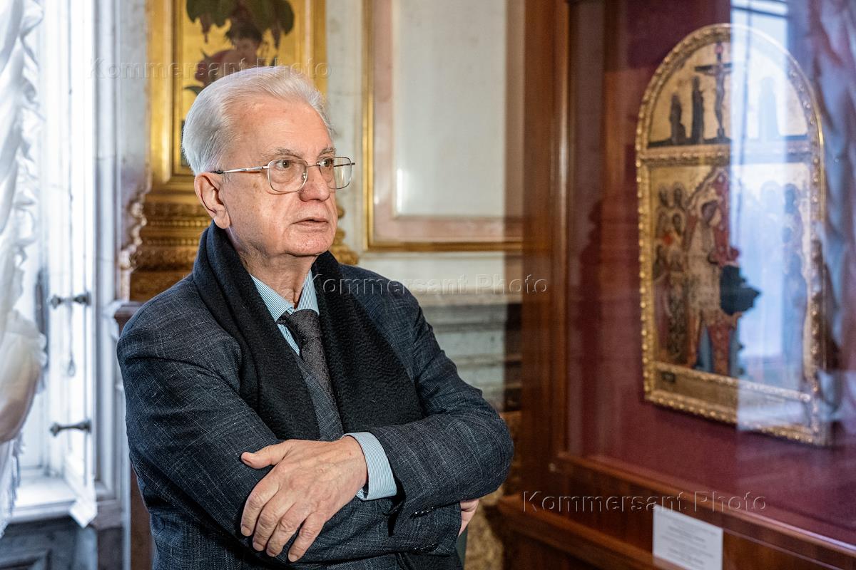 Церемония возвращения в постоянную экспозицию Государственного Эрмитажа креста с изображением распятия Христа итальянского художника Уголино ди Тедиче после реставрации. Директор Государственного Эрмитажа Михаил Пиотровский во время церемонии.