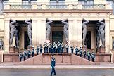 Церемония возвращения в постоянную экспозицию Государственного Эрмитажа креста с изображением распятия Христа итальянского художника Уголино ди Тедиче после реставрации. Военный оркестр у здания Эрмитажа.