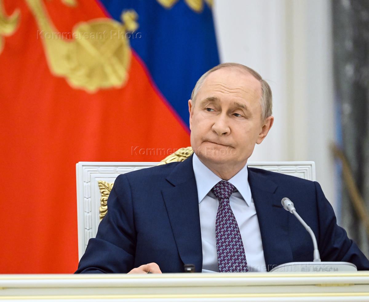 Совещание по вопросам социально-экономического развития ДНР, ЛНР, Запорожской и Херсонской областей в Кремле. Президент России Владимир Путин во время совещания.