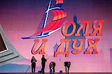 Праздник выпускников средних школ Санкт-Петербурга "Алые паруса- 2025" на Дворцовой площади. Певцы Надежда Кадышева (слева) и Григорий Костюк во время выступления на празднике.