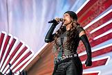 Праздник выпускников средних школ Санкт-Петербурга "Алые паруса- 2025" на Дворцовой площади. Певица Валерия Василевская (Bearwolf) во время выступления на празднике.