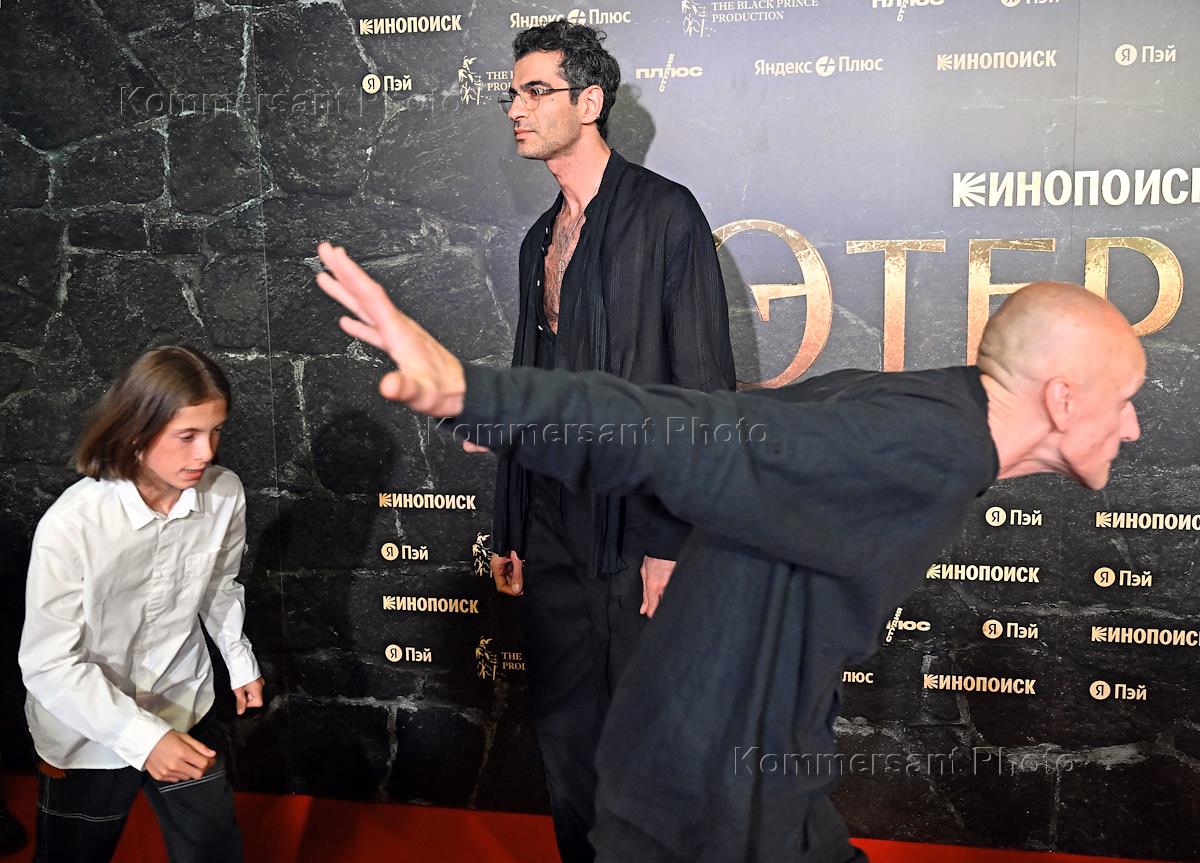 Премьера фэнтези-сериала "Этерна" режиссера Сергея Трофимова в кинотеатре "КАРО 11 Октябрь". Актер Амбарцум Кабанян (в центре) на премьере.