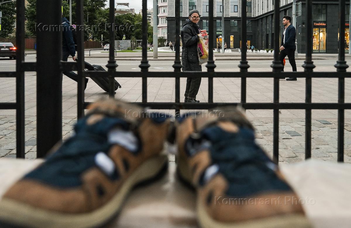 Еженедельный ужин для бездомных, проходящий каждый вторник в храме Флора и Лавра на Зацепе. Детские ботинки на обеденном столе после ужина.