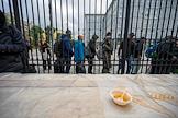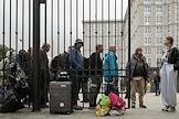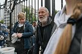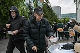 Еженедельный ужин для бездомных, проходящий каждый вторник в храме Флора и Лавра на Зацепе. Бездомные в очереди за ужином.