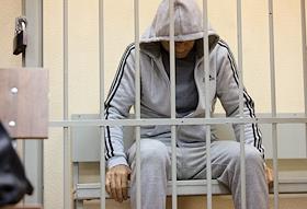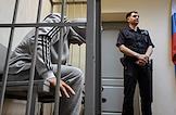 Судебное заседание по делу Камала Сафарова и Азиза Абасова, обвиняемых в убийстве, совершенном по предварительному сговору, в Ленинском районном суде. Обвиняемый Камал Сафаров во время заседания суда.