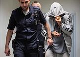 Судебное заседание по делу Камала Сафарова и Азиза Абасова, обвиняемых в убийстве, совершенном по предварительному сговору, в Ленинском районном суде. Обвиняемый Азиз Абасов после заседания суда.