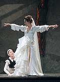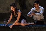 Пресс-показ спектакля "Жюли" по мотивам пьесы Августа Стриндберга "Фрекен "Жюли" в постановке режиссера Джеймса Нобо на сцене Театра Наций. Актеры Александр Новин (справа) и Ольга Лерман (слева) во время спектакля.