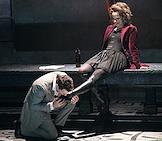 Пресс-показ спектакля "Жюли" по мотивам пьесы Августа Стриндберга "Фрекен "Жюли" в постановке режиссера Джеймса Нобо на сцене Театра Наций. Актриса Ольга Лерман (справа) во время спектакля.
