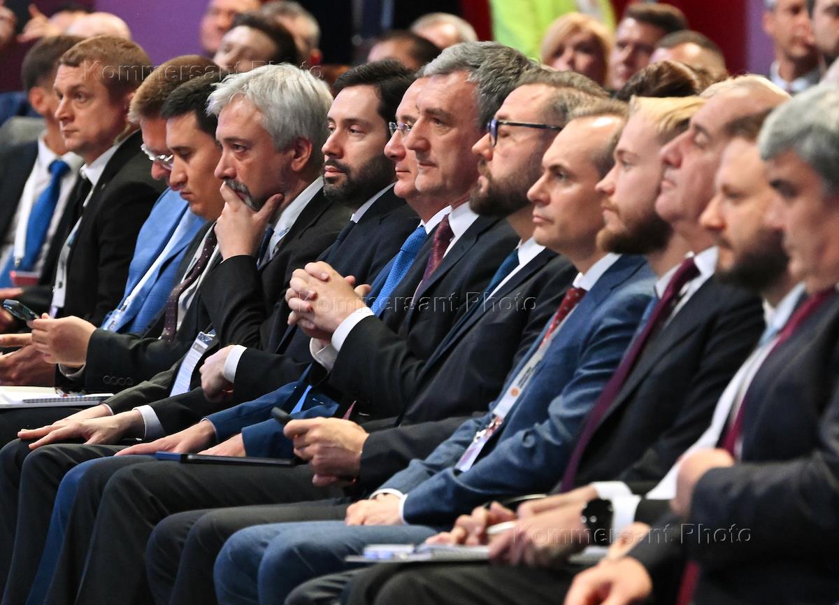Форум "Сильные идеи для нового времени" в Национальном центре "Россия". Участники форума во время пленарного заседания.