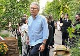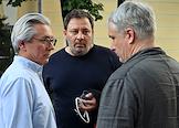 Церемония открытия читательской дачи "Шануар", совместного проекта Maison Dellos и журнала "Чтиво", на летней веранде гранд-кафе "Шануар". Писатель, главный редактор журнала "Чтиво" Сергей Минаев (в центре) на церемонии.