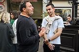 Церемония открытия читательской дачи "Шануар", совместного проекта Maison Dellos и журнала "Чтиво", на летней веранде гранд-кафе "Шануар". Писатель, главный редактор журнала "Чтиво" Сергей Минаев (слева) и преподаватель Высшей школы экономики, медиаменеджер Александр Файб (справа) на церемонии.
