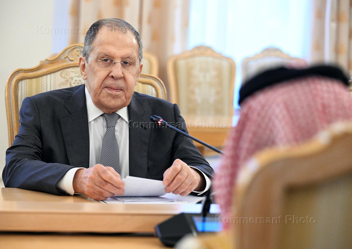 Переговоры министра иностранных дел России Сергея Лаврова с министром иностранных дел Королевства Саудовская Аравия Фейсалом Бен Фарханом Аль Саудом в Доме приемов МИД России. Министр иностранных дел Королевства Саудовская Аравия Фейсал Бен Фархан Аль Сауд (справа) и министр иностранных дел России Сергей Лавров (слева) перед началом пресс-конференции по итогам переговоров.