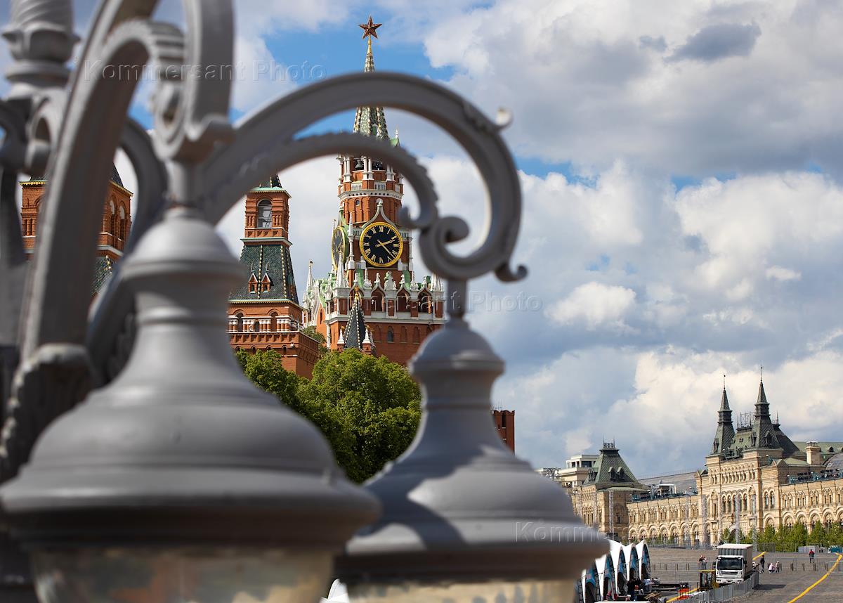 Moscow views. Spasskaya Tower of the Moscow Kremlin and the Main Department Store on Red Square.