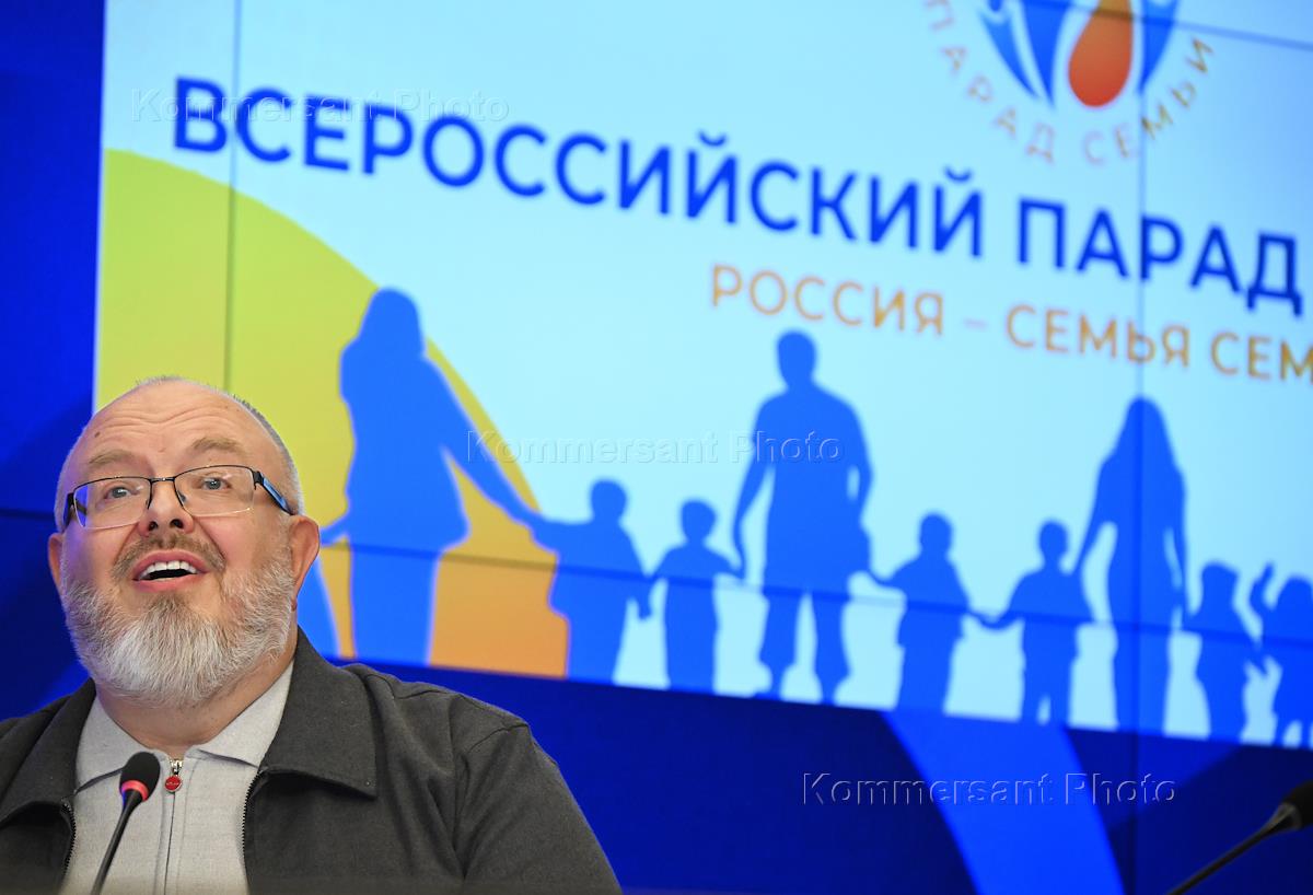 A press conference dedicated to the Day of Family, Love and Fidelity, celebrated annually on July 8, at the International Media Group "Russia Today". Coordinator of the organizing committee of the All-Russian Family Parade, Chairman of the All-Russian public movement "Family", coordinator-founder of the All-Russian public movement "Forty forties" Andrey Kormukhin at the press conference.
