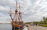 Виды Воронежа. Жанровая фотография. Корабль-музей, Парусник, историческая копия русского парусного корабля времён Петра I "Гото Предестинация" на Петровской набережной.