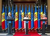 Первый саммит Европейский Союз (ЕС) — Молдавия в резиденции президента Молдавии. Председатель Европейского совета Антониу Кошту во время пресс-конференции.