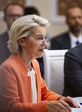 Первый саммит Европейский Союз (ЕС) — Молдавия в резиденции президента Молдавии. Председатель Европейской комиссии Урсула фон дер Ляйен перед началом саммита.