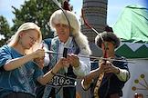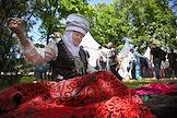 Московский общегородской праздник "Сабантуй-2025" на территории Музея-заповедника "Коломенское". Жанровая фотография. Мастер-класс по прядению на площадке "Башкирская деревня".