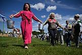 Московский общегородской праздник "Сабантуй-2025" на территории Музея-заповедника "Коломенское". Зрители танцуют у главной сцены во время концертной программы праздника.