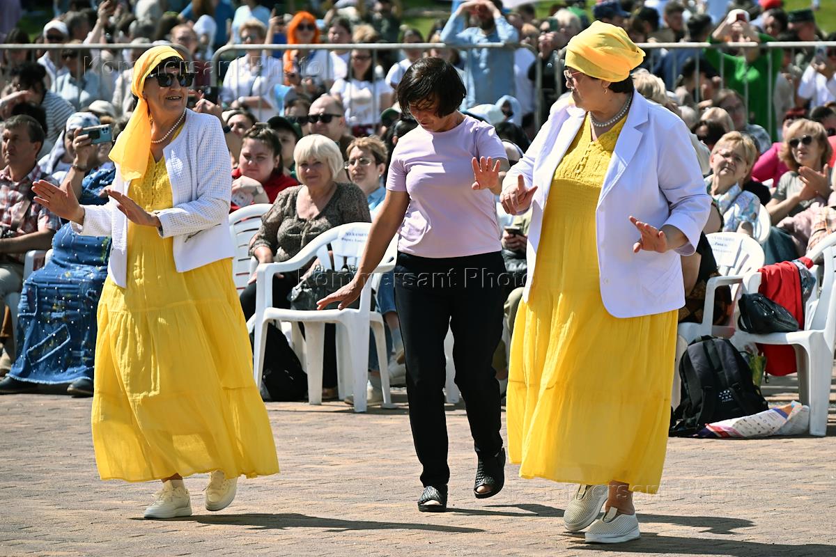Московский общегородской праздник "Сабантуй-2025" на территории Музея-заповедника "Коломенское". Зрители танцуют во время концертной программы праздника.