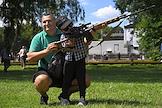 Московский общегородской праздник "Сабантуй-2025" на территории Музея-заповедника "Коломенское". Жанровая фотография. Гости праздника во время мастер-класса стрельбы из лука на площадке "Башкирская деревня".