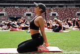 День Московского спорта на территории Олимпийского комплекса "Лужники". Гимнастка Самира Мустафаева во время фитнес-тренировки.