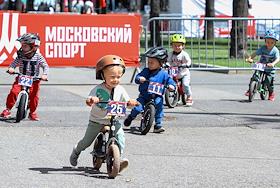 День Московского спорта на территории Олимпийского комплекса "Лужники". Дети во время соревнований на детских велосипедах.
