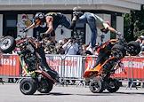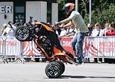День Московского спорта на территории Олимпийского комплекса "Лужники". Участники во время показательного выступления на мотоцикле и квадроцикле.