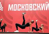 День Московского спорта на территории Олимпийского комплекса "Лужники". Участницы во время фитнес-тренировки.