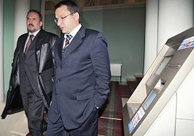 Губернатор Ивановской области Михаил Мень (слева) после пресс-конференции "Ивановская область: первые итоги работы правительства. Инвестиционная политика региона: проведение первого экономического форума Ивановской области в мэрии Москвы. Плес: создание особой экономической зоны. Восстановление аэропорта "Иваново-Южный". Игорный бизнес: возможность создания на территории Ивановской области отдельной резервации". Пресс-конференция прошла в пресс-центре "АиФ".