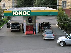 Жанровое фото. Автомобили на бензозаправке компании "ЮКОС".