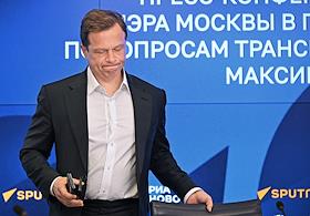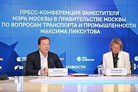 Заместитель мэра Москвы в правительстве Москвы по вопросам транспорта и промышленности, руководитель департамента транспорта и развития дорожно-транспортной инфраструктуры города Москвы Максим Ликсутов во время пресс-конференции в МИА "Россия сегодня".
