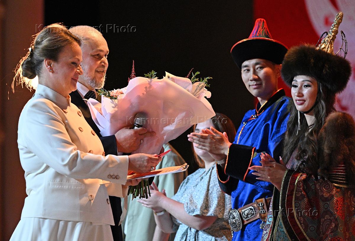 II Всероссийский свадебный фестиваль "Россия. Соединяя сердца" в Национальном центре "Россия". Заместитель министра обороны России, председатель фонда "Защитники Отечества" Анна Цивилева (вторая слева) и министр энергетики России Сергей Цивилев (слева) во время фестиваля.