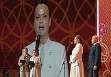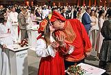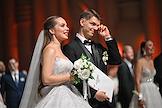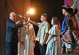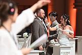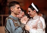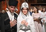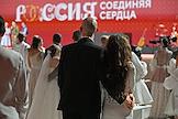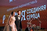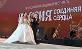 II Всероссийский свадебный фестиваль "Россия. Соединяя сердца" в Национальном центре "Россия". Участники фестиваля во время торжественной церемонии бракосочетания.