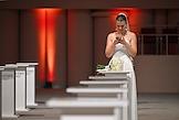 II Всероссийский свадебный фестиваль "Россия. Соединяя сердца" в Национальном центре "Россия". Участница фестиваля перед началом торжественной церемонии бракосочетания.