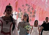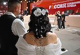 II Всероссийский свадебный фестиваль "Россия. Соединяя сердца" в Национальном центре "Россия". Участники фестиваля перед началом торжественной церемонии бракосочетания.