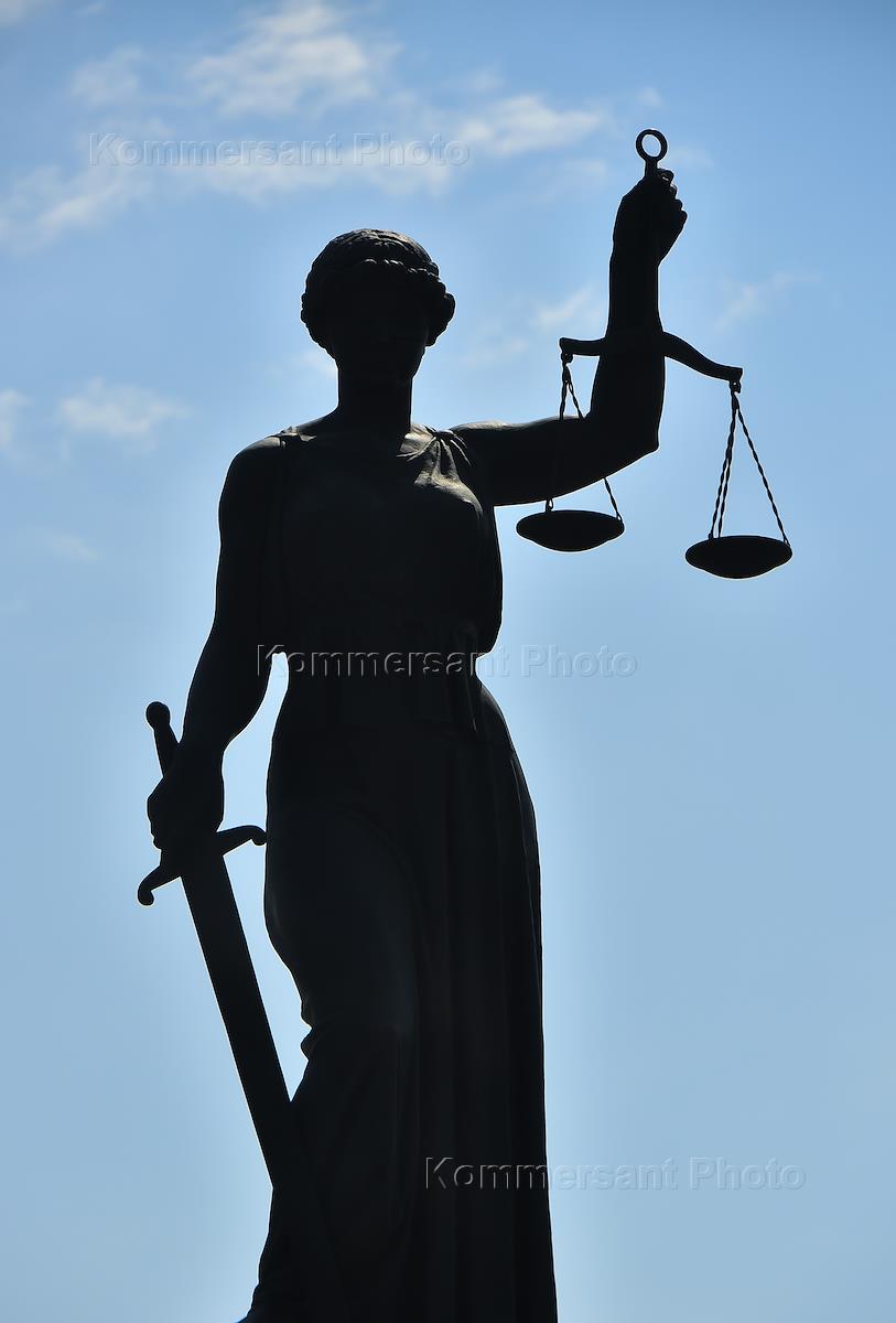 Виды Красноярска. Жанровая фотография. Скульптура богини правосудия Фемиды у здания Краевого суда.