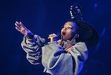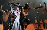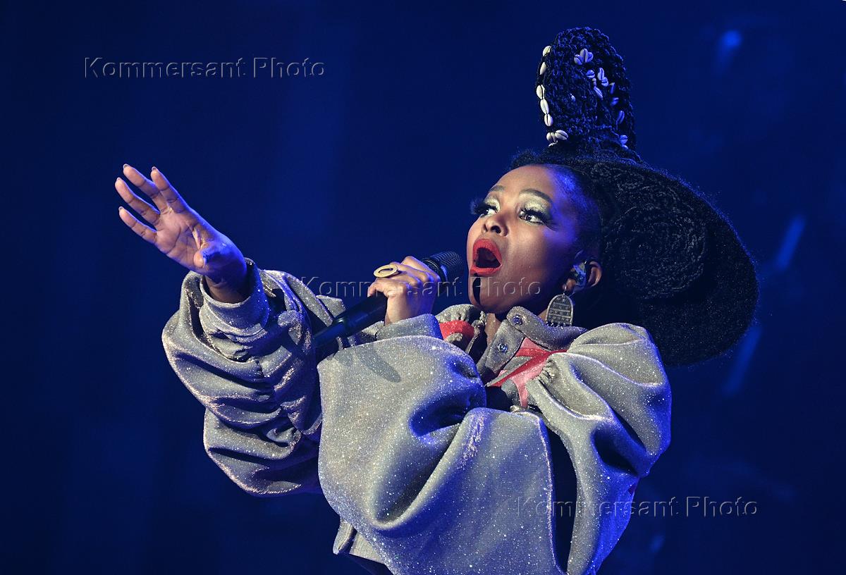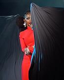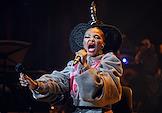 Семнадцатый Международный театральный фестиваль имени А.П.Чехова. Музыкальный спектакль "МОЙЯ" певицы Симфиве Даны и Театра танца Вуяни (ЮАР) на сцене Концертного зала "Зарядье". Певица Симфиве Дана во время выступления.