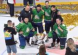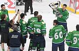 Суперфинал чемпионата Континентальной хоккейной лиги (КХЛ) в формате "3х3" на стадионе "ЦСКА Арена". Финал. Матч между командами "Салават Юлаев" (Уфа) - "Ак Барс" (Казань). Игроки и тренерский штаб команды "Салават Юлаев" на церемонии награждения после матча.