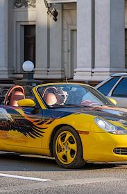Виды Воронежа. Жанровая фотография. Автомобиль кабриолет на улице города.