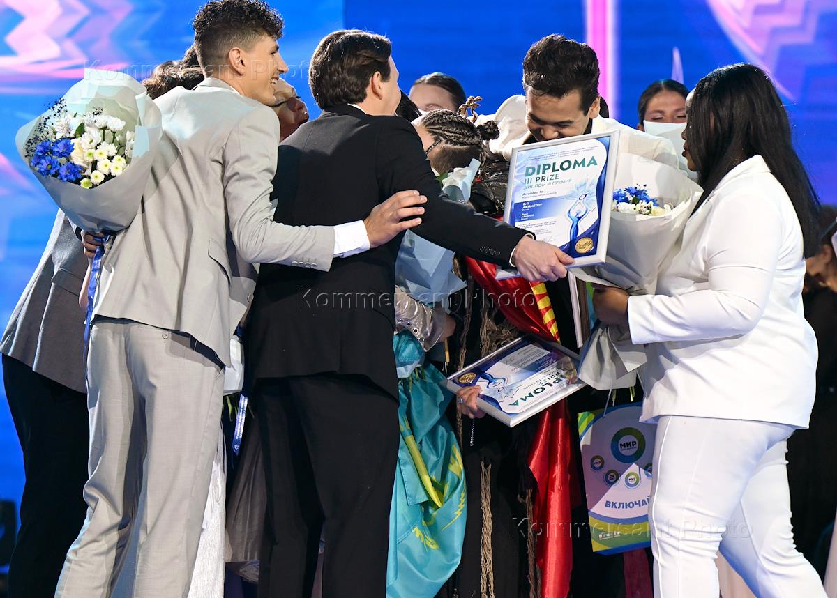 XXXIV Международный фестиваль искусств "Славянский базар". Концерт торжественного закрытия фестиваля. Участники конкурса во время церемонии награждения.